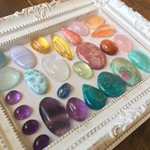 *天然石をそのまま切り取りひとつひとつ手磨きでルースにしているため、天然石によっては欠けなどが見られる事がございますが、自然のものとしてご理解いただければと思います。