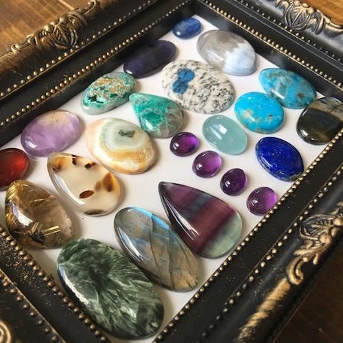 *天然石をそのまま切り取りひとつひとつ手磨きでルースにしているため、天然石によっては欠けなどが見られる事がございますが、自然のものとしてご理解いただければと思います。