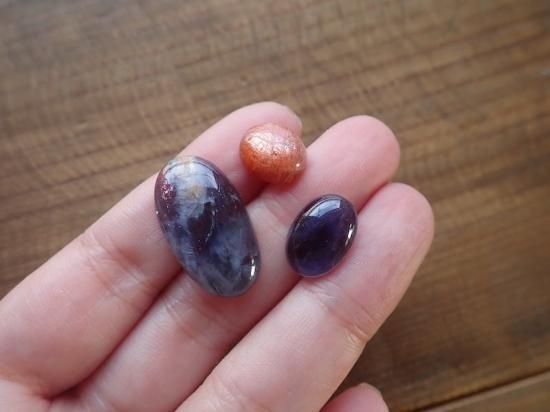 こちらは、アイオライトサンストーン、アイオライト、サンストーンがセットになっております。