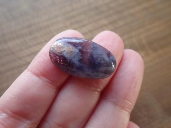 また、肉眼でもサンストーンをしっかりと確認できる珍しいピースもこのセットには含まれております。こちらのピースは私が前回海外での買い付けの際に、ほんの数ピースだけ見つけられた希少なアイオライトサンストーンとなっておりますため、ぜひこの機会に手にしていただけたらと思います。
