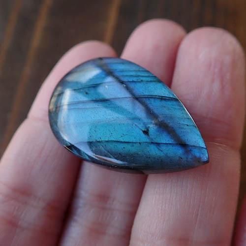 こちらは両面がカボションタイプとなっているラブラドライトです。研磨もとても美しくぜひ手にとって見て頂きたいルースです。