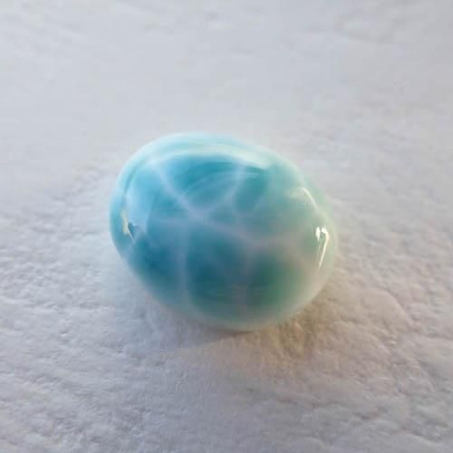 こちらはドミニカ共和国で採掘されているラリマーになります。数あるラリマーの中から、色味がしっかりあるもの、波模様がでているものを中心に美しいラリマーを買い付けました。表面/裏面も鏡面磨きとなっていて研磨もとても美しいピースになります。