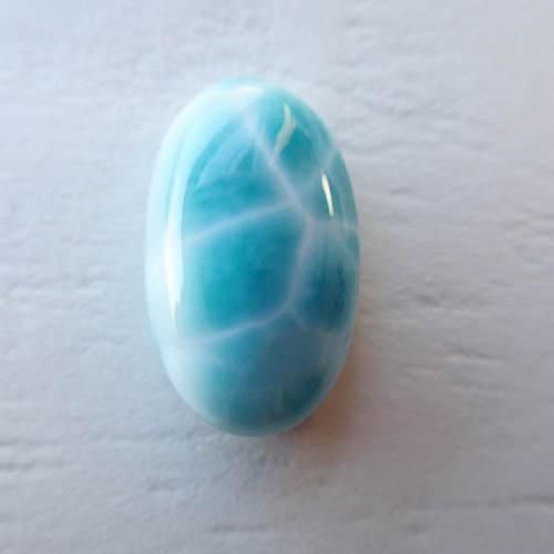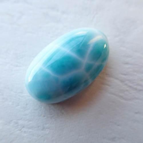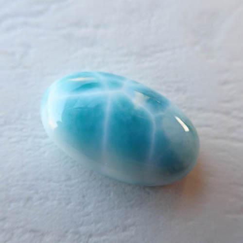 こちらはドミニカ共和国で採掘されているラリマーになります。数あるラリマーの中から、色味がしっかりあるもの、波模様がでているものを中心に美しいラリマーを買い付けました。表面/裏面も鏡面磨きとなっていて研磨もとても美しいピースになります。