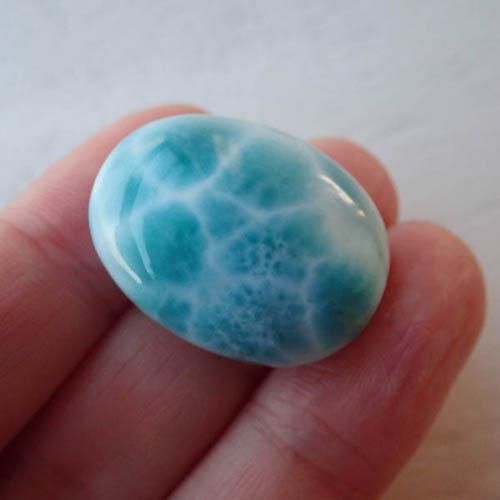 こちらはドミニカ共和国で採掘されているラリマーになります。数あるラリマーの中から、色味がしっかりあるもの、波模様がでているものを中心に美しいラリマーを買い付けました。表面/裏面も鏡面磨きとなっていて研磨もとても美しいピースになります。