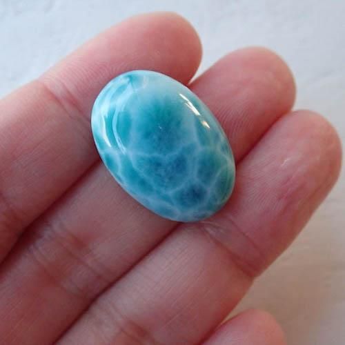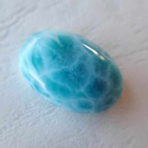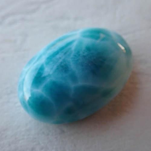 こちらはドミニカ共和国で採掘されているラリマーになります。数あるラリマーの中から、色味がしっかりあるもの、波模様がでているものを中心に美しいラリマーを買い付けました。表面/裏面も鏡面磨きとなっていて研磨もとても美しいピースになります。