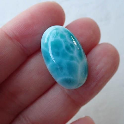 こちらはドミニカ共和国で採掘されているラリマーになります。数あるラリマーの中から、色味がしっかりあるもの、波模様がでているものを中心に美しいラリマーを買い付けました。表面/裏面も鏡面磨きとなっていて研磨もとても美しいピースになります。