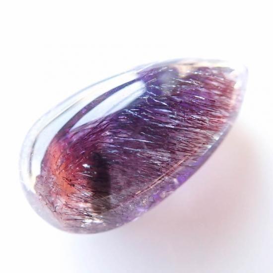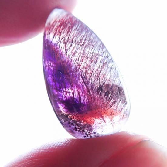 透明度の高い水晶の中に、アメジスト、カコクセナイト、ゲーサイト、レピドクロサイト、スモーキークォーツ、ルチルなど複数の鉱物が内包されている天然石です。とはいえ、7つの鉱物が全て入っているのは稀であり、原石でそれらを内包している石からカットされた石をスーパーセブンと一般的には呼んでいます。