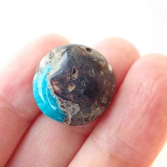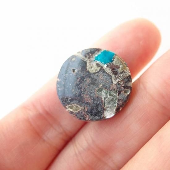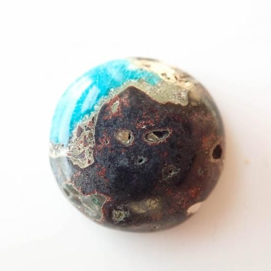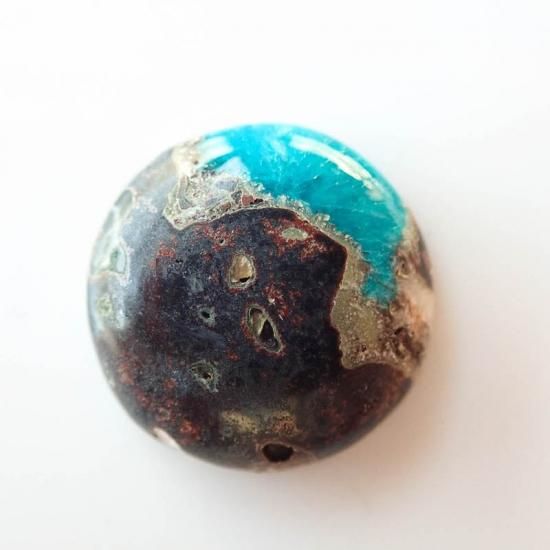 それ単体では硬度が低く脆いため、ジュエリーに加工するのは難しいと言われているのですが、今回掲載するカバンサイトはカバンサイトの美しい色を残しつつ、母岩を含めて形作る事でアクセサリーに耐えうるルースとなっております。
