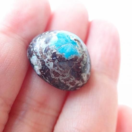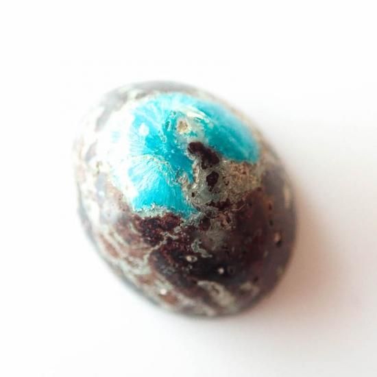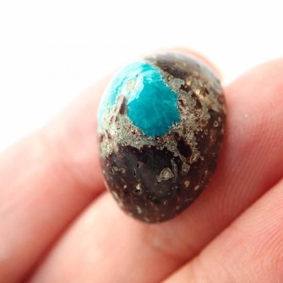それ単体では硬度が低く脆いため、ジュエリーに加工するのは難しいと言われているのですが、今回掲載するカバンサイトはカバンサイトの美しい色を残しつつ、母岩を含めて形作る事でアクセサリー加工に耐えうるルースとなっております。
