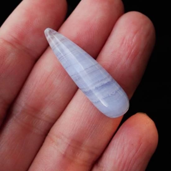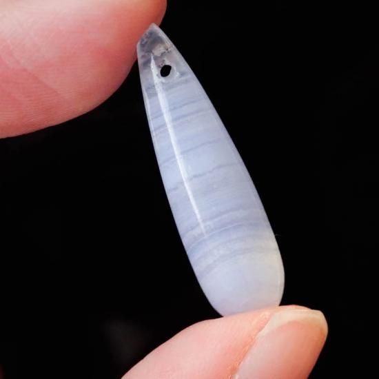 珍しい立体的な雫型が可愛らしいブルーレースアゲートのルースです。