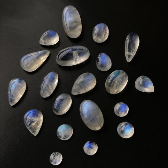 こちらの商品はレインボームーンセットになっております。7.8粒ほどで1万円を超えるような質のものが入っていますが、今回は20点をこの価格でお出しいたします。クラックの間にグレーのサシ(クラック)が入ったピースやシラーがやや薄いものも多少ですが中にはございます。とはいえ良いクオリティーもミックスで入っていますので総合的にみるとかなりお得かと思います。