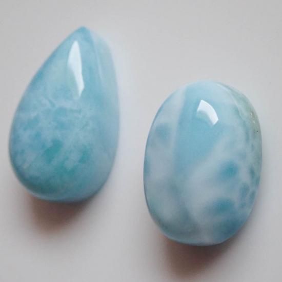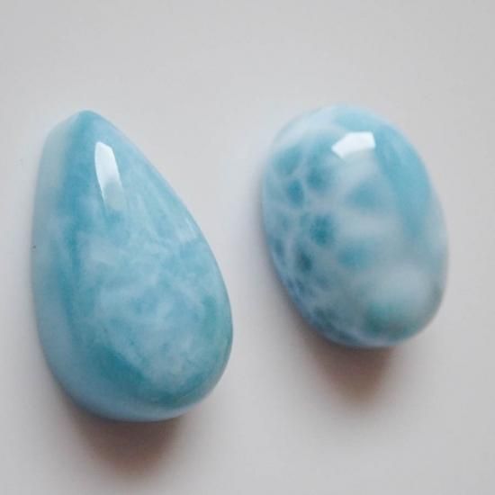 今回掲載するラリマーは、全て両面が鏡面研磨のラリマーとなります(片面カボションタイプ)。お手頃でお求め安いクオリティーのラリマーを多めにまとめて買い付けしたことで、ひとつあたりの価格をここまで抑えることができました。