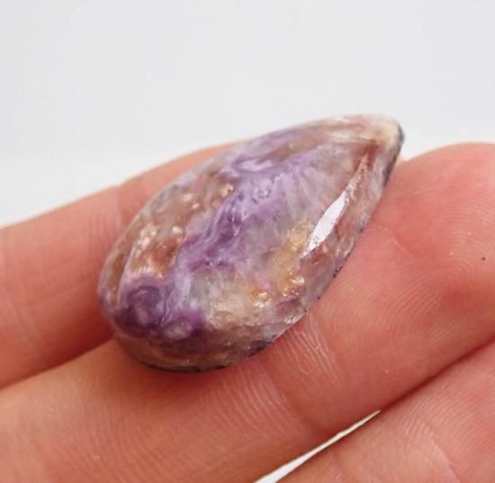 チャロアイトはロシアの女性考古学者によって、シベリアのChara(チャラ)川流域の調査をしている時に発見され1978年に新鉱物として承認された比較的新種の天然石で、高貴な紫色をベースにシルクのように光沢のある模様が輝きます。
