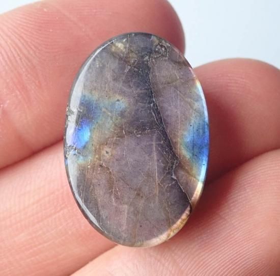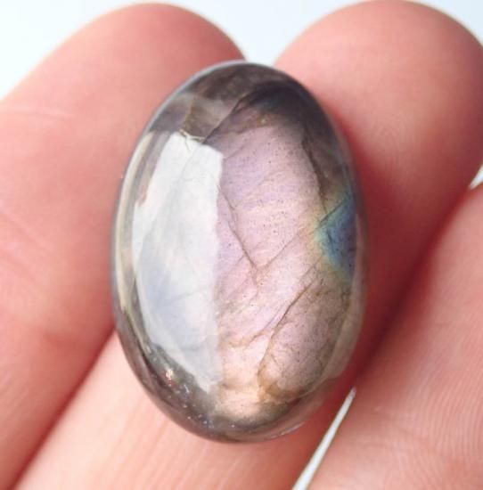 グレーのような黒のような地に目を引く青緑のシラーが閃光を放つように輝きはラブラドレッセンスと言われています。