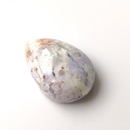 こちらは陶器のような質感が美しいティァニーストーンです。個性が強いティファニーストーンですが、模様や色合いなど優しさを感じられるものを中心にセレクトいたしました。形もぷっくりとしているタイプになりとても可愛いです。最後の写真はルースの裏面となります。