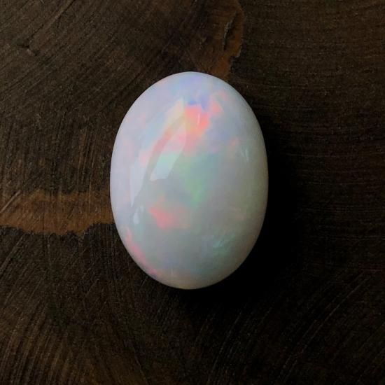 こちらはエチオピアオパールの中でもなかなか入手困難な特大サイズのルースとなります。乳白色の中に美しく輝く遊色は圧巻です。お写真は自然光で撮影していますが、直射日光や光の強い場所ではより一層輝きます。最後の写真はルースの裏面となります。