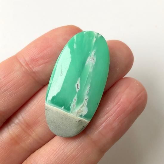こちらはバリサイトのルースになります。見た目がターコイズに似ていることから青い色が着色されている事がありますが(特にタイへ買い付けに行った際に多く見かけました)、こちらの色味は自然のものとなります。また、こちらのバリサイトは発色がとても美しくクオリティーの良いタイプのものとなります。安価なバリサイトも別途同時掲載しておりますが、価格の違いはクオリティーの違いによるものです。