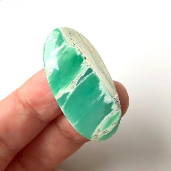 こちらはバリサイトのルースになります。見た目がターコイズに似ていることから青い色が着色されている事がありますが(特にタイへ買い付けに行った際に多く見かけました)、こちらの色味は自然のものとなります。また、こちらのバリサイトは発色がとても美しくクオリティーの良いタイプのものとなります。安価なバリサイトも別途同時掲載しておりますが、価格の違いはクオリティーの違いによるものです。