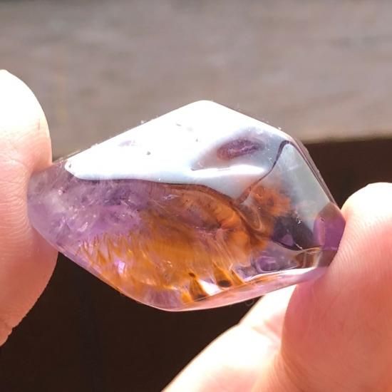 こちらはカコクセナイトインアメシストの原石磨きとなります。(タンブル)