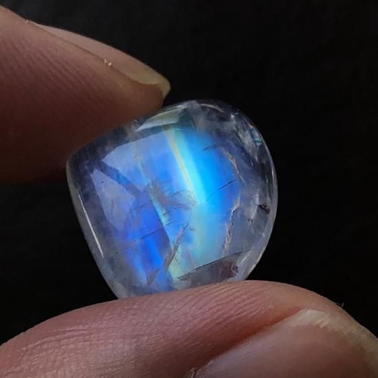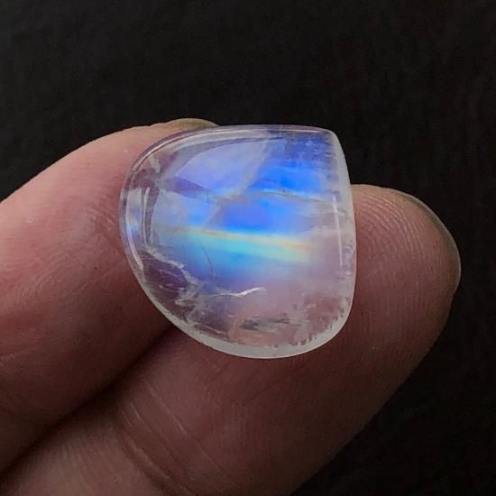 レインボームーンストーンは質によって大きく印象や価格が変わる石のひとつでもありますが、こちらはIRODORI STONEで扱ってきた過去のものと比較しますと品質の良いルースとなっております。*青色はどうしても写真だと濃く写りすぎてしまいます(こちらは編集しても色味が実際に近づきませんでした)。実際はもう少し青が弱く淡い感じのお色です。