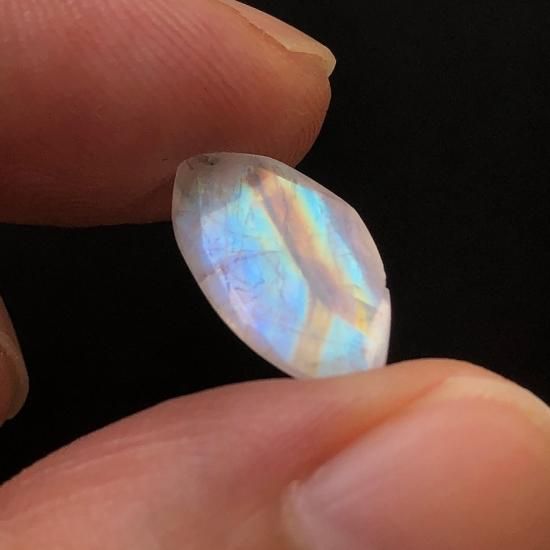 こちらは両面カットの入ったレインボームーンストーンとなります。両面にはそれぞれ違うカットが施されておりますのでどのような作品にしようか色々とアイデアが浮かびそうですね^^