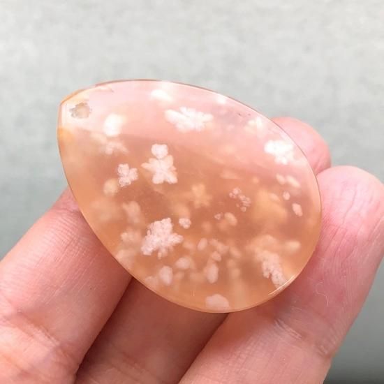 (穴あき)桜瑪瑙 チェリーブロッサムアゲート 約39x29x10.5mm 812-3