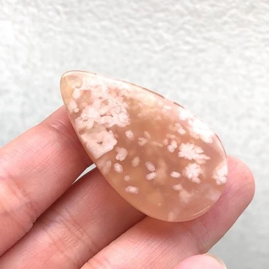 (穴あき)桜瑪瑙 チェリーブロッサムアゲート 約43x25x12mm 812-8
