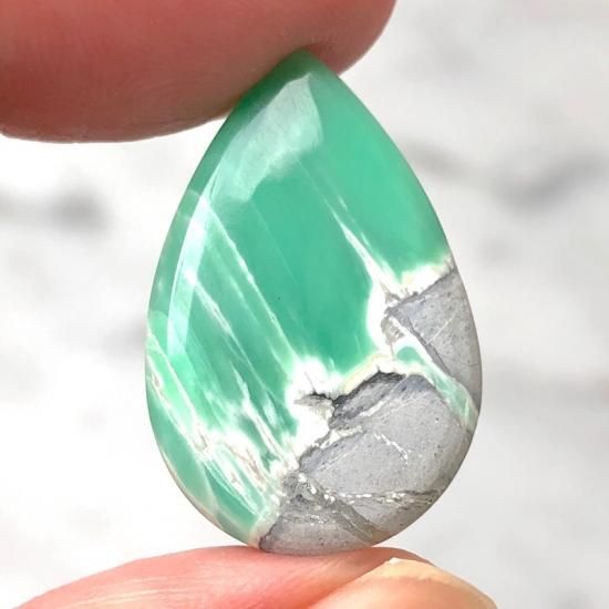 見た目がターコイズに似ていることから青い色が着色されている事がありますが(特にタイへ買い付けに行った際に多く見かけました)、こちらの色味は着色ではなく自然の色の天然石となります。