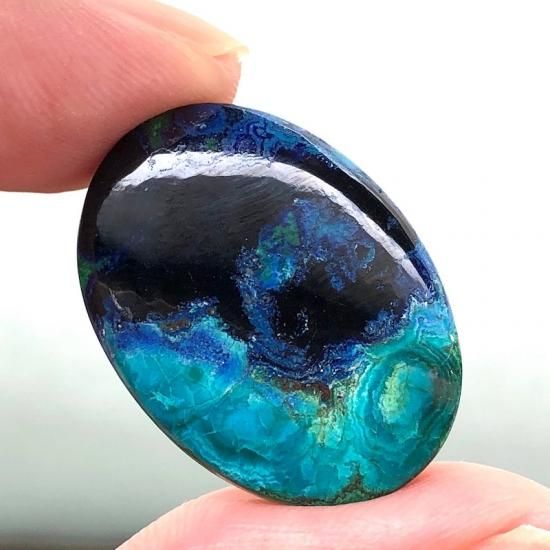 アズライトやマラカイト、そしてクリソコラなど胴床をベースとした様々な二次鉱物が混ざり合いひとつとない表情を作りだしている独特なアズロマラカイト。