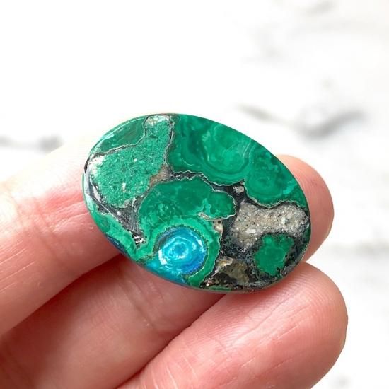 特に今回のピースはアズロマラカイトの中でも今までに見たことのないような芸術的な模様が特徴的で、思わずこれを手にとった時にお迎えせずにはいられませんでした。