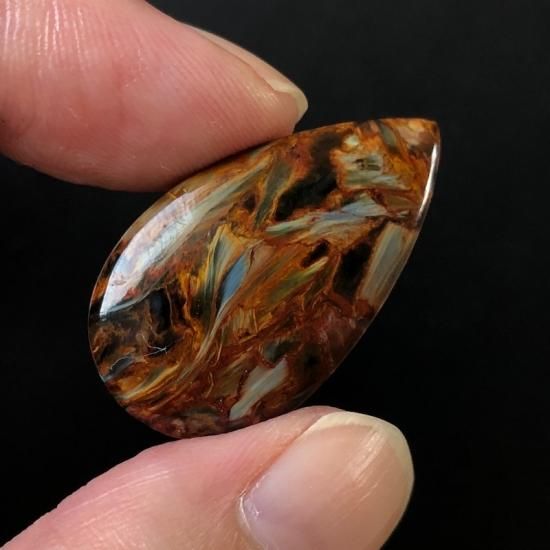 元々はタイガーアイとホークスアイが地殻変動の影響で粉砕され、そこにクォーツが染み込み長い年月をかけ何度も変成を繰り返し、最終的に硬化してピーターサイトになりました。