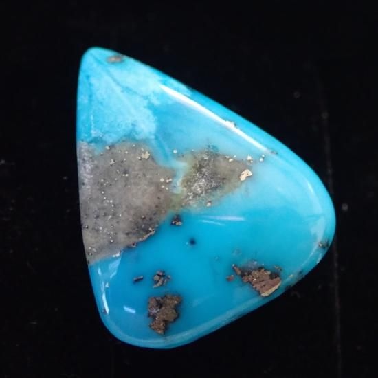 天然のターコイズらしく母岩やパイライトが混ざっていたりしますので、表裏含めてぜひその天然さも楽しんで頂けたらと思います。