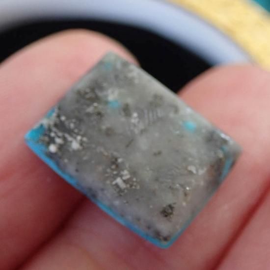 天然のターコイズらしく母岩やパイライトが混ざっていたりしますので、表裏含めてぜひその天然さも楽しんで頂けたらと思います。