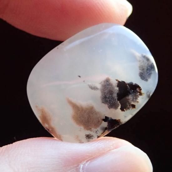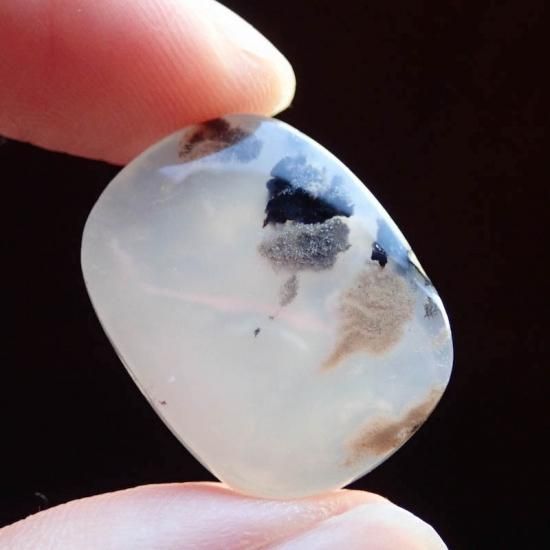 こちらはインドネシア産のタイガーデンドリティックアゲートのルースになり、厚みはないものの両面カボションタイプのカットになっております。ちなみに、表と裏では見える模様が違うのでとっても面白いのです^^