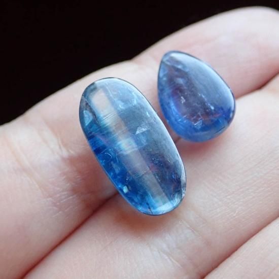 良品質 カイヤナイト2粒セットD ネパール 約13x9x5mm/アフリカ 約18x9x5mm