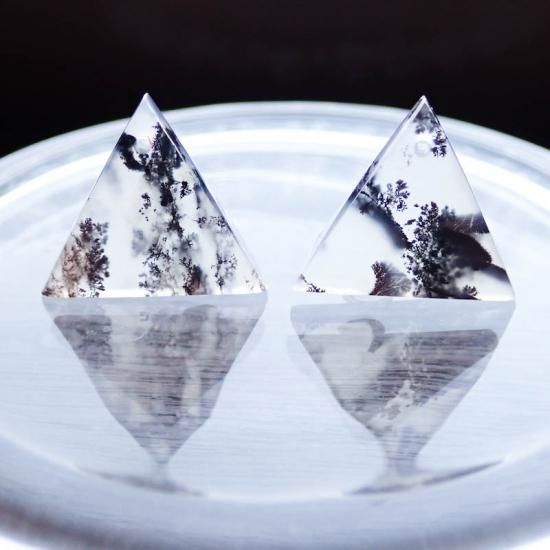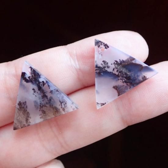 デンドリティック/デンドライトが織り成す黒と白のコントラスト、そして直線的な形がとてもスタイリッシュなトライアングル型のルースです。