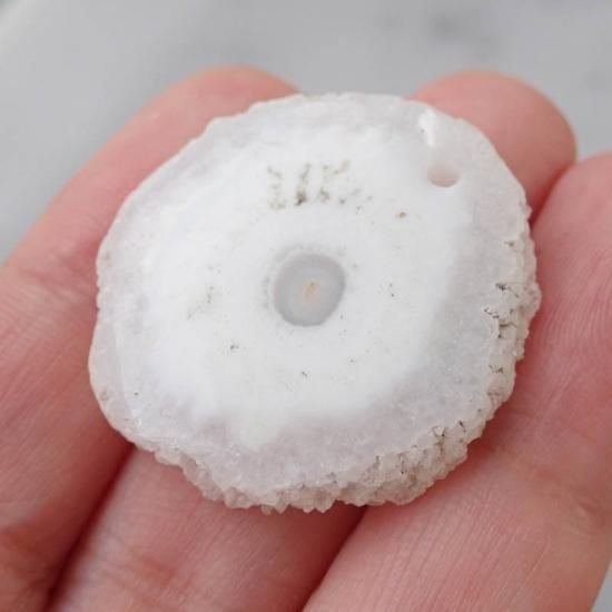 穴あきですので、そのままバチカンを使用してペンダントトップとしてもご使用できますし、製作者の方であればマクラメ作品にもできます。