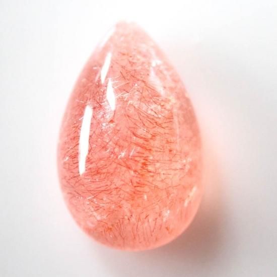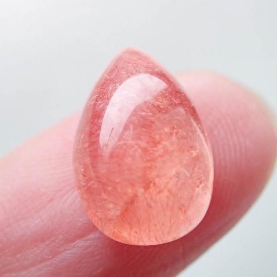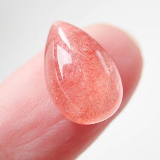 ストロベリークォーツ自体に出会うのがなかなか難しい現状なのですが、水晶の透明度が高く、また針鉄鋼の密度が高いものに関しては本当に見かけません。ましてやカボションのみの状態ですとほとんどないのではないでしょうか…。