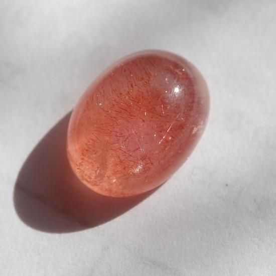 今回入荷したものは、透明度がよくお色に関してもとても美しい赤みがかったオレンジカラーとなり、ストロベリークォーツの中でも良いクオリティーだと思います。
