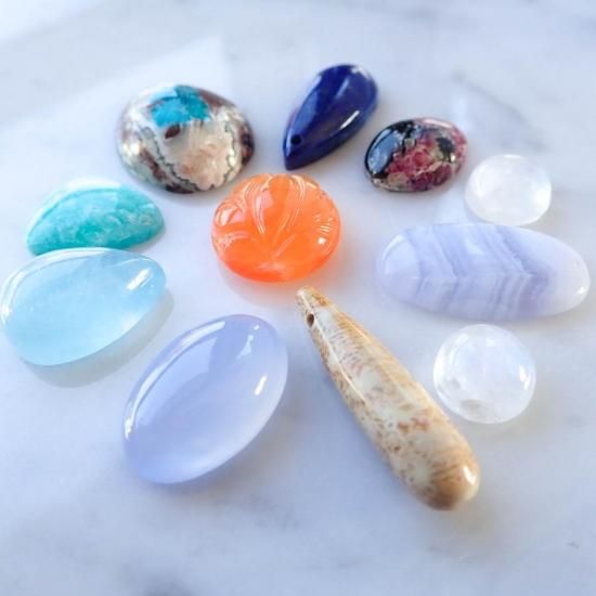 ・天然石をそのまま切り取りひとつひとつ手磨きでルースにしているため、天然石によっては欠けやくぼみ、不純物や内包物などが見られる事がございますが、自然のものとしてご理解いただければと思います。