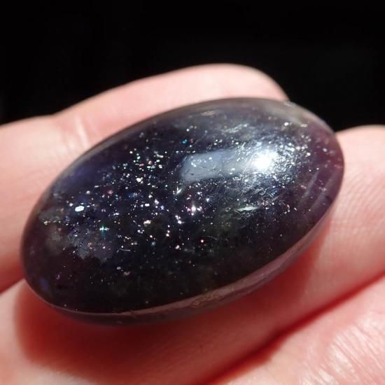 一見暗く地味に見える石ですが、光を受けると微細なインクルージョンがきらきらとラメ状に輝き、満天の星空を連想されてくれる美しい天然石です。