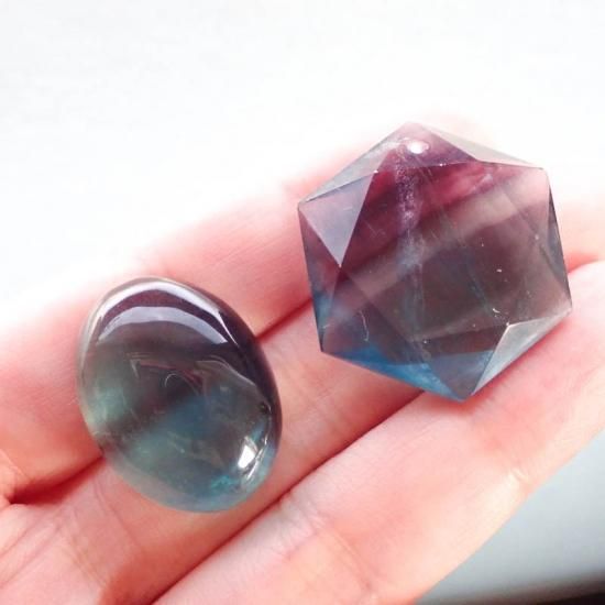 今回、世界各地・色々な石屋さんとの出会いの中で、少し前にフローライトを専門とする方と出会い、美しく研磨されたものが工場から直接私の元にきてくれるルートを特別に確保する事ができました。