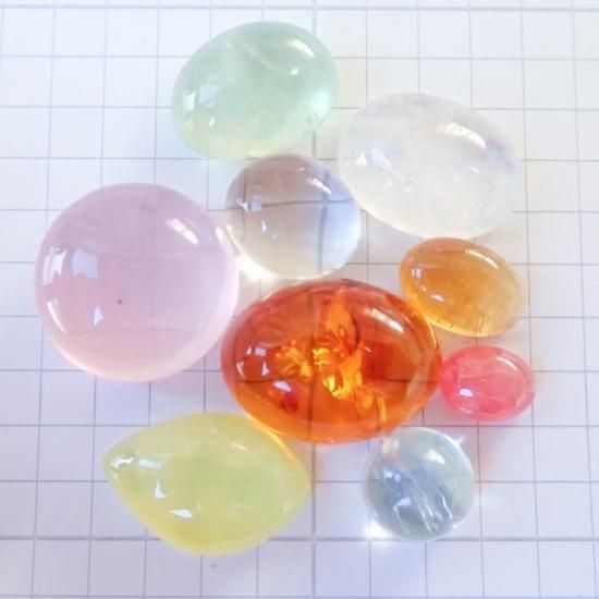 ・天然石をそのまま切り取りひとつひとつ手磨きでルースにしているため、天然石によっては欠けやくぼみ、不純物や内包物などが見られる事がございますが、自然のものとしてご理解いただければと思います。