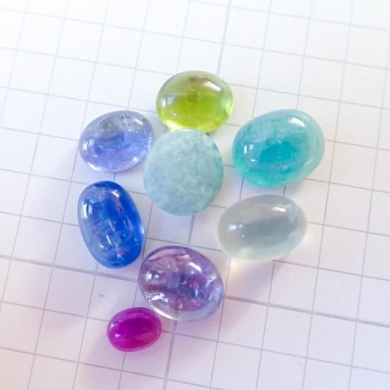 ・天然石をそのまま切り取りひとつひとつ手磨きでルースにしているため、天然石によっては欠けやくぼみ、不純物や内包物などが見られる事がございますが、自然のものとしてご理解いただければと思います。