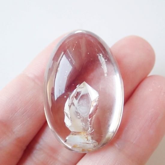 貫入水晶/クォーツインクォーツはその見た目から貫入などと呼ばれていますが、成り立ちとしては水晶の中に水晶が入り込んだのではなく、すでにできていた水晶の結晶を別の水晶が取り囲むようにしてできたものです。