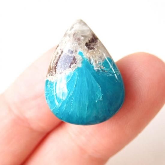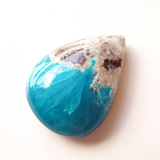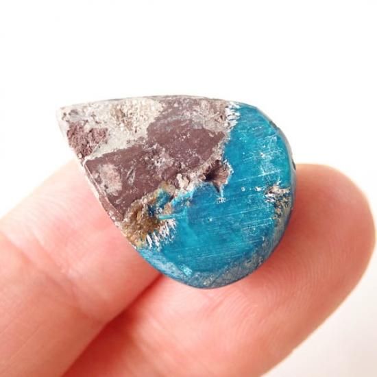 それ単体では硬度が低く脆いため、ジュエリーに加工するのは難しいと言われているのですが、今回掲載するカバンサイトはカバンサイトの美しい色を残しつつ、母岩を含めて形作る事で強度を少しだけあげたようなルースとなっております。