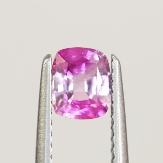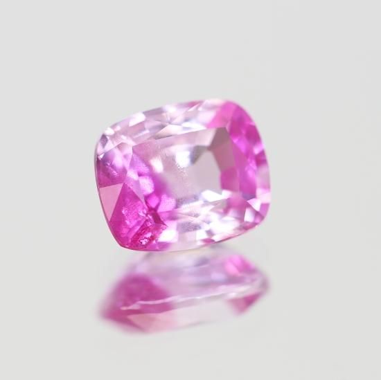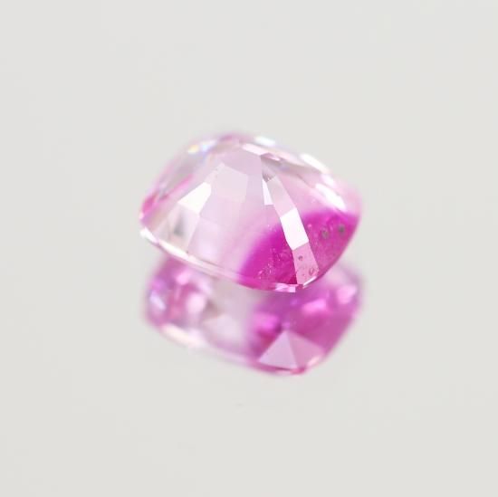 鮮やかでビビッドなピンクが目をひくバイカラーサファイアは、一見、両端に色が入っているように見えます。